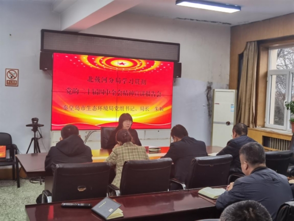 为深入学习贯彻党的二十届四中全会精神,11月29日上午,博彩平台举办全系统学习贯彻党的二十届四中全会精神宣讲报告会,局党组书记、局长朱颖向全市生态环境系统宣讲党的二十届四中全会精神。当天下午,朱颖深入北戴河分局以座谈形式宣讲党的二十届四中全会精神,引导全体党员干部把思想和行动统一到党中央决策部署上来。