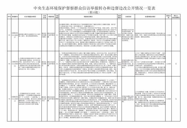 附件:中央生态环境保护督察群众信访举报转办和边督边改公开情况一览表(第十批)