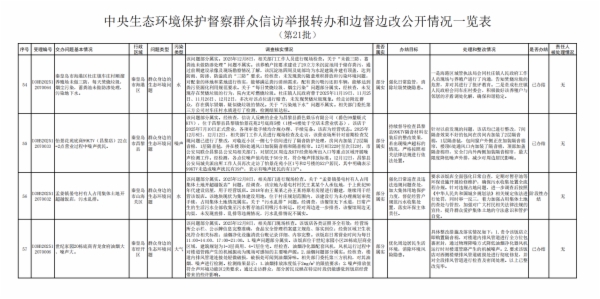 附件:中央生态环境保护督察群众信访举报转办和边督边改公开情况一览表(第二十一批)