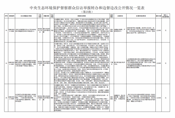 附件:中央生态环境保护督察群众信访举报转办和边督边改公开情况一览表(第二十五批)
